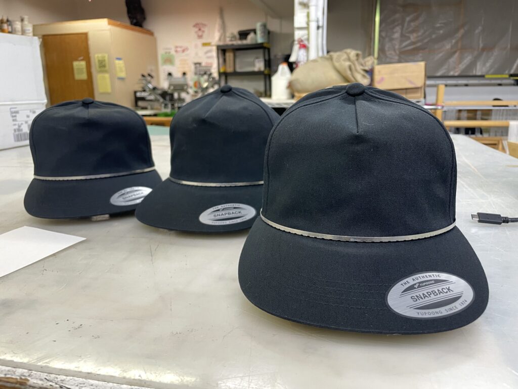 (Hats, beanies, tees, hoodies, jackets, polo shirts, patches, tote bags, etc.)